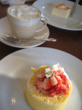 イチゴのロールケーキとバニラミルクティー。