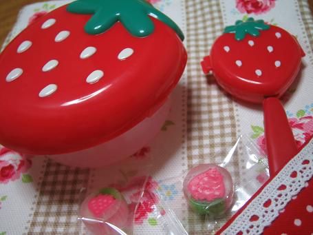 苺の容器にスプーン、そして苺のアメも頂いちゃいました。